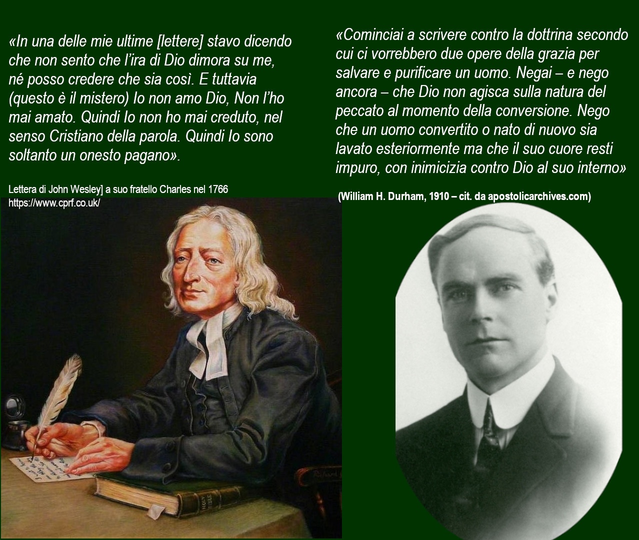 - Gli episodi di Chicago, dal 1907, attorno alla figura carismatica di William Howard Durham (1873-1912) che poi avranno un’influenza più consistente rispetto ai precedenti, talché la linea di W.H. Durham sarà quella che s’imporrà di più e a cui oggi sono riconducibili le principali denominazioni pentecostali del mondo. Questa è anche la radice a cui è riconducibile il pentecostalismo italiano. E a questa soltanto.
